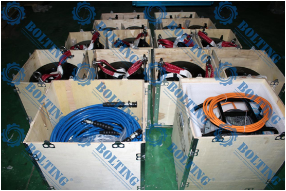 該套配置采用一拖四液壓螺栓拉伸器,同步拉伸同步拆卸,不會發生偏載情況,相對應的保障了使用人員的安全。